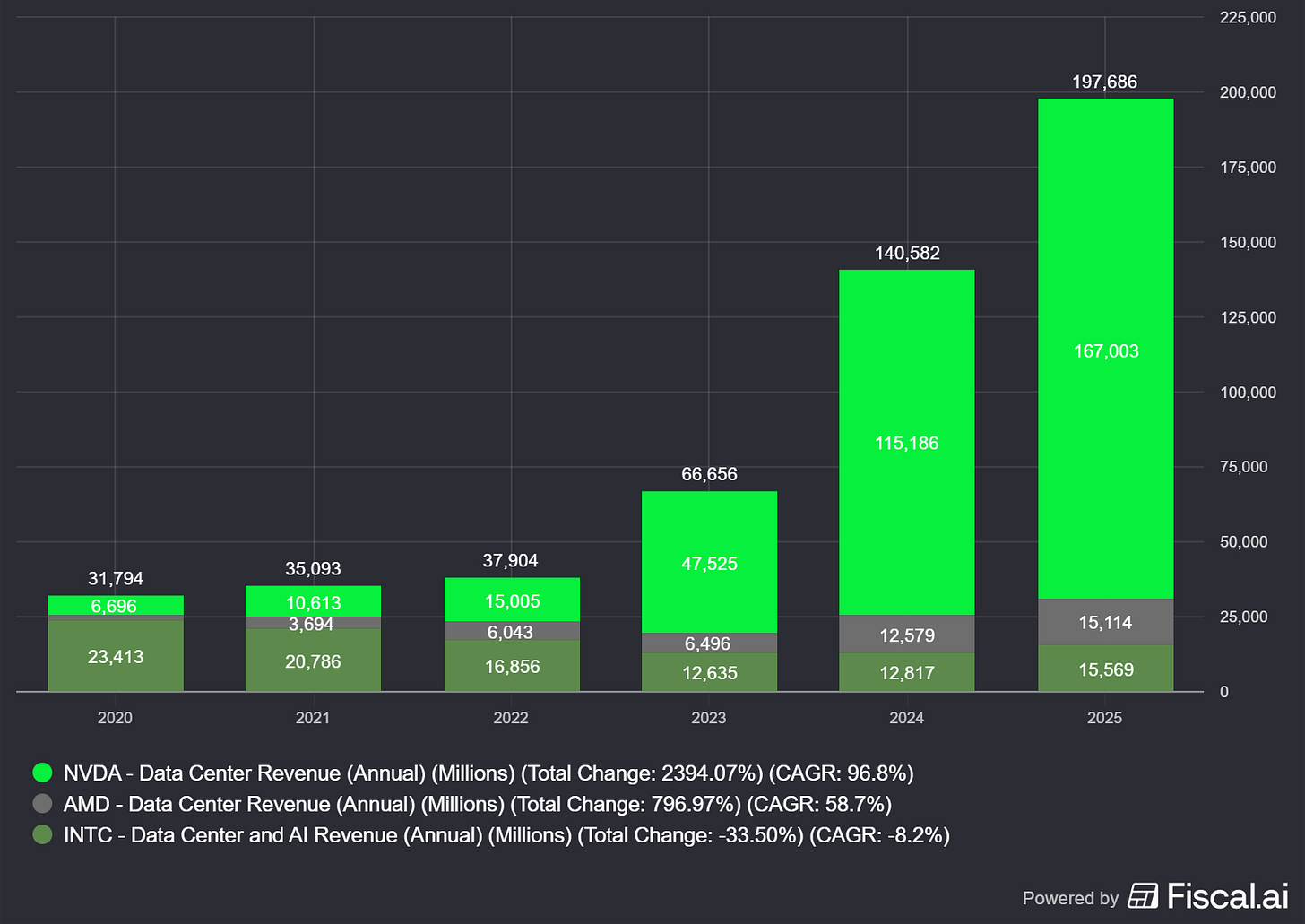 To put the ambition of this target into perspective, we must look at the current landscape. In today’s estimated ~$200 billion TAM, Nvidia’s dominance is staggering: