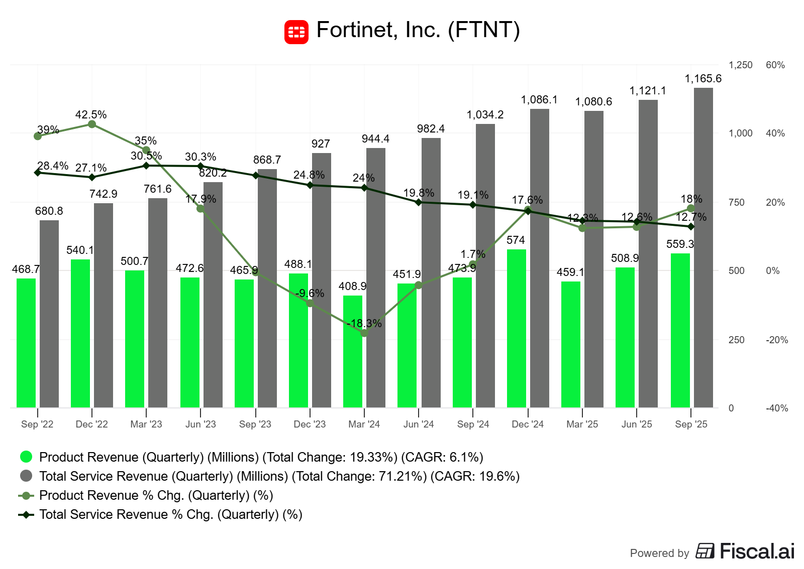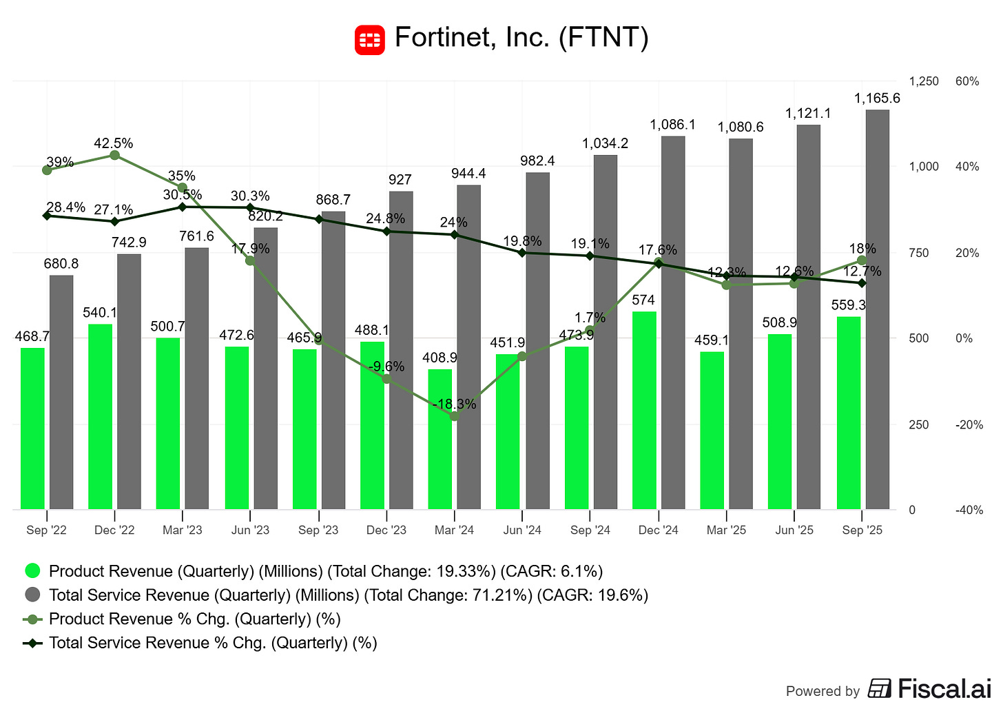 Fortinet delivered a strong Q3, beating estimates across the board, posting record-high operating margins, and most importantly raising its full-year guidance for billings, operating margin, and EPS. However, the continued deceleration in service revenue, coupled with reduced 2025 guidance for that segment and an expected slowdown in Q4 sales growth, worried investors.