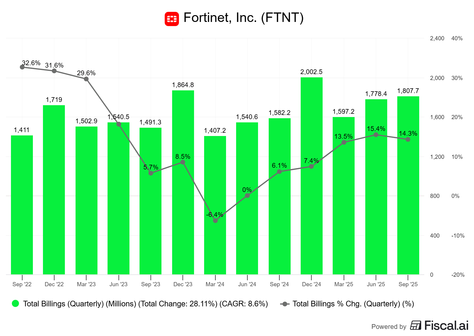 Shareholder Returns: In Q3, Fortinet executed a massive repurchase, buying back 23.3 million shares for a total cost of $1.83 billion or 3% of total shares!! Approximately $796 million remains under the current share buyback authorization.