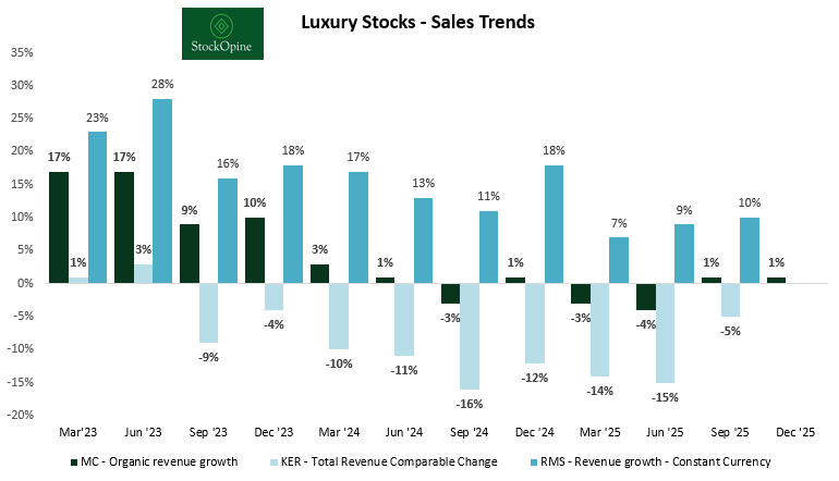 We are now deep into the second year of the fashion luxury industry downcycle, and it feels like a never-ending story. The silver lining? LVMH is not suffering in isolation. The Group performed significantly better than its closest competitor, Kering, confirming that these headwinds are industry-wide rather than company-specific. Of course, we must exclude the ultra-premium outlier, Hermès, from this comparison. Their ability to sustain positive revenue growth serves as a testament to the fact that ultra-premium scarcity is far more recession-resistant than broader luxury.