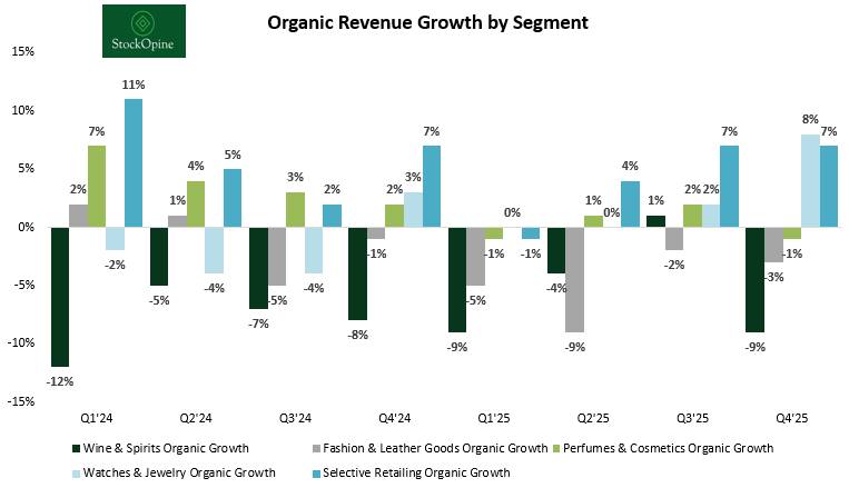With the exception of Wines & Spirits, all remaining segments showed improvement in the second half of the year. However, only Watches & Jewelry and Selective Retail delivered positive consecutive growth in both Q3 and Q4.