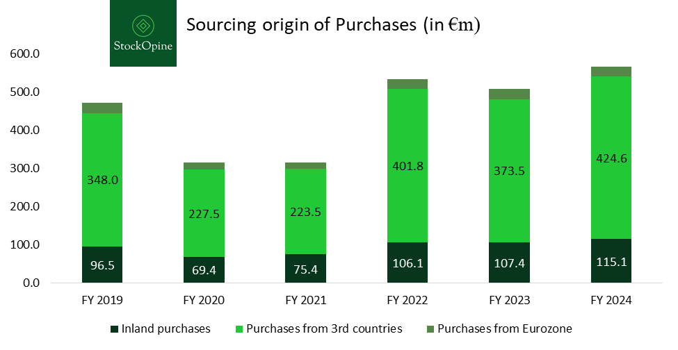 In the near term, the Company stands to benefit from favorable sourcing dynamics, including lower costs from Chinese suppliers and potential pricing leverage due to the US-China tariff tensions and a stronger euro. However, these tailwinds are inherently volatile and short-lived. While margins may benefit temporarily, the long-term outlook remains uncertain, reinforcing the need for supply chain agility.