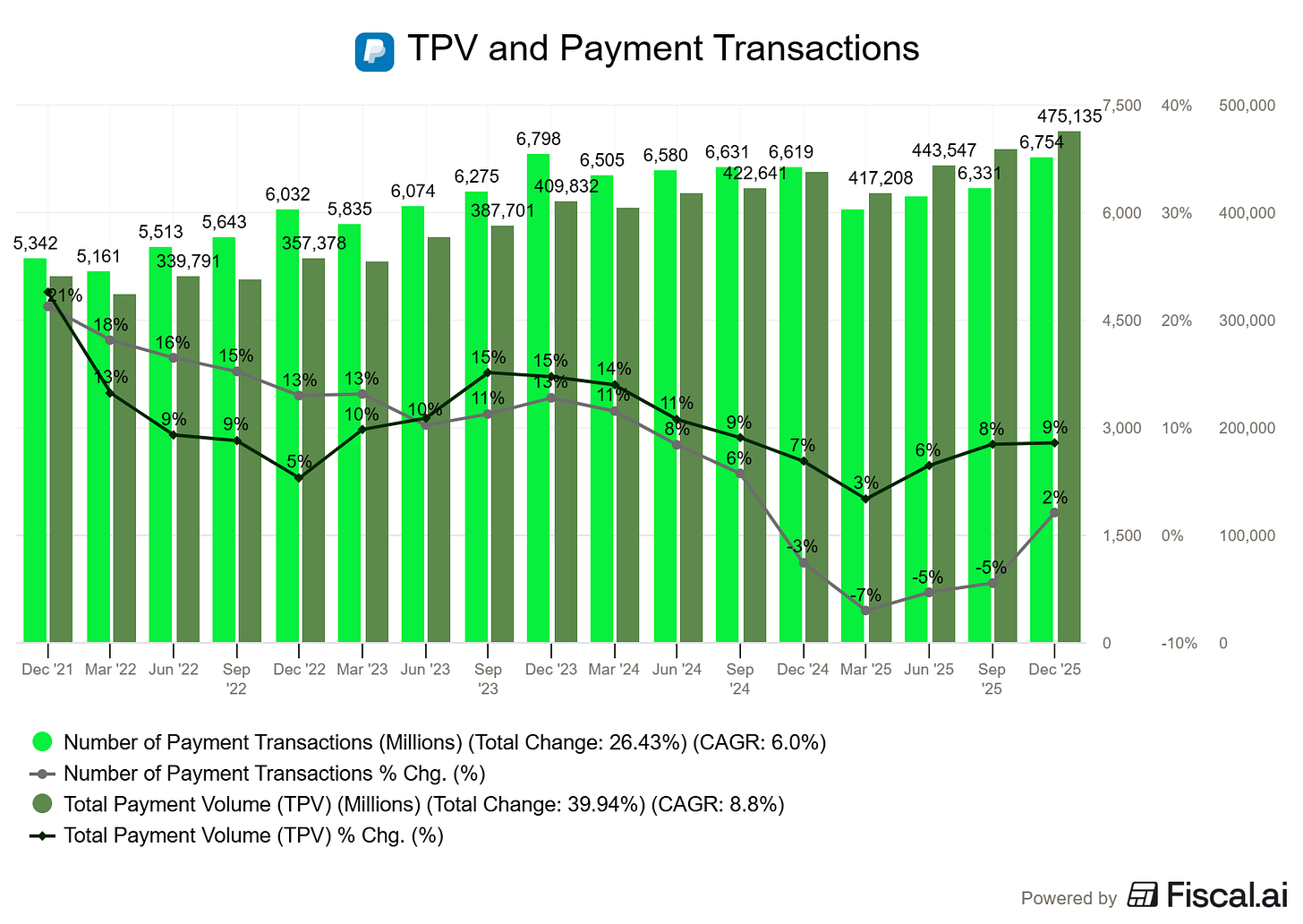 The volume picture is also discouraging. TPV grew 9%, while payment transactions increased just 2%. Excluding PSP (Braintree) volume, transactions rose 6%. That implies PSP transactions declined by roughly 13% during the quarter. It’s a clear hit to the volume narrative, though it does mark an improvement from the ~20% YoY decline seen in the prior quarter.