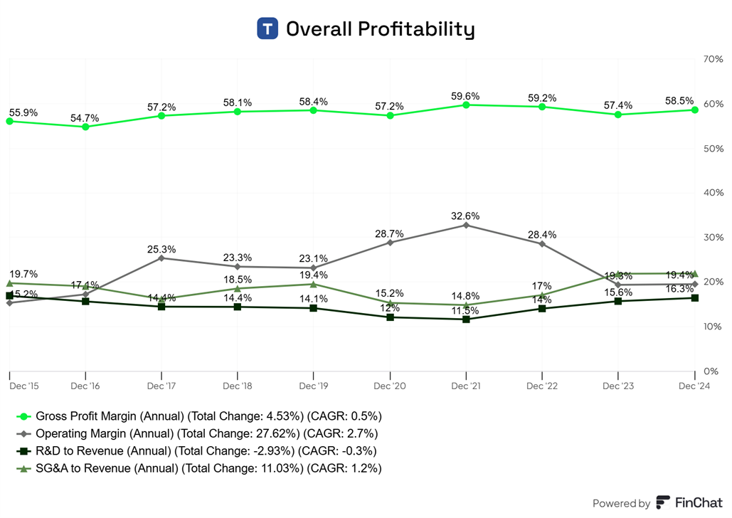 Teradyne maintains strong profitability, especially in the ATE segment, due to its technological edge. Gross margins reached 58.5% in FY2024, up from 57.4% in 2023, though slightly lower than the 2022-2021 peak levels which exceeded 59%. Margins are sensitive to industry cycles but have consistently remained above 57% since 2017. Operating margins peaked during 2020–2022 with high sales but normalized to 19% in 2023. By 2028, management expects that Operating margin will exceed 28% on a non-GAAP basis from 20.4% in 2024. A key factor in sustaining its leadership is heavy investment in R&D, with annual spend exceeding 15% of revenue.